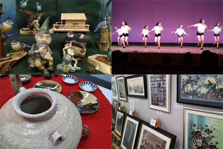 クラシックバレエ、レザークラフト、押し花アート、書画、合唱、陶芸、パッチワーク、日本舞踊、大正琴など千早赤阪村の文化作品が一堂に集まります。