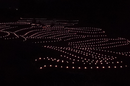 収穫を終えた棚田にろうそくの灯火が並ぶ幻想的なイベント。またライブイベントも同時開催。風にゆらめくほのかな炎に彩られた音楽に心癒されるひと時を。
